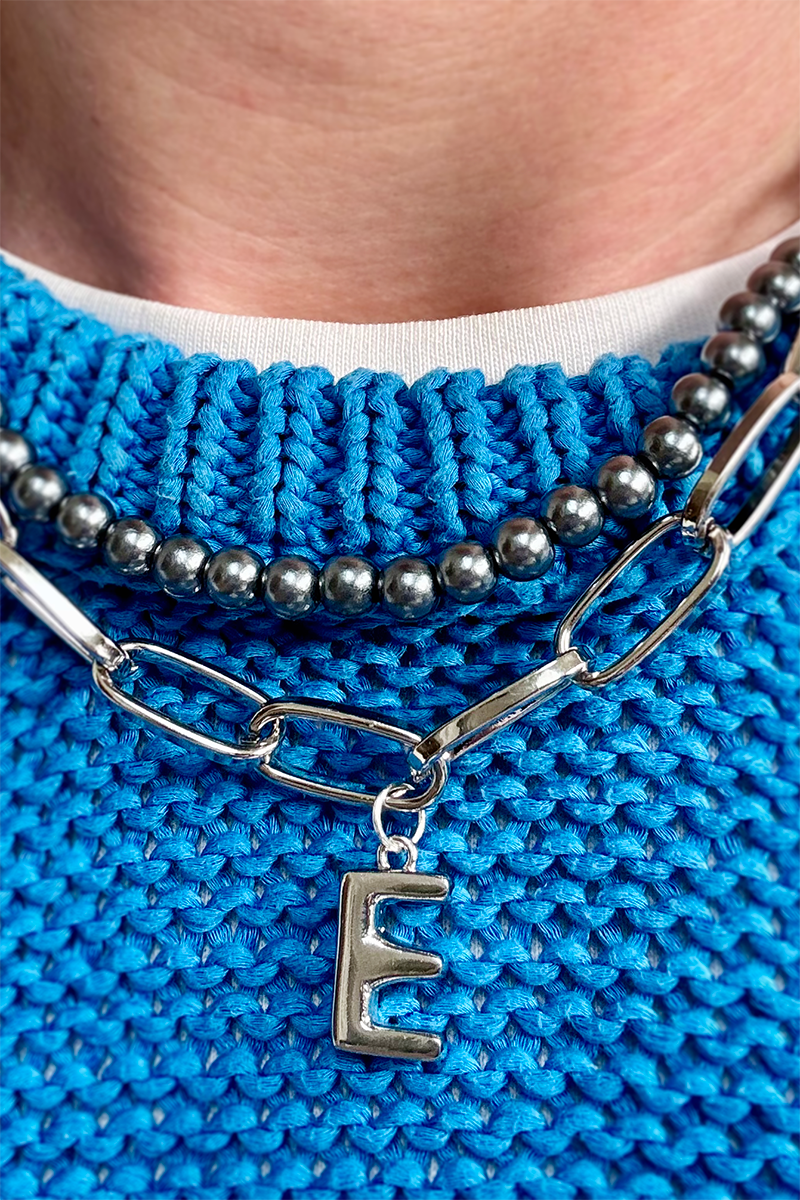 This necklace is also now available in all silver. The plated chain and letter can be gifted as a personalised treat and worn alone or layered.