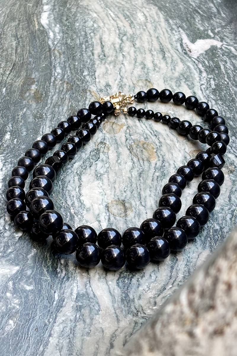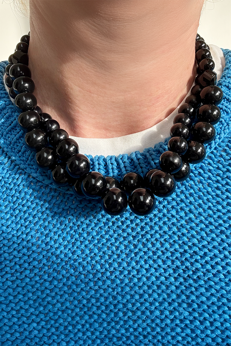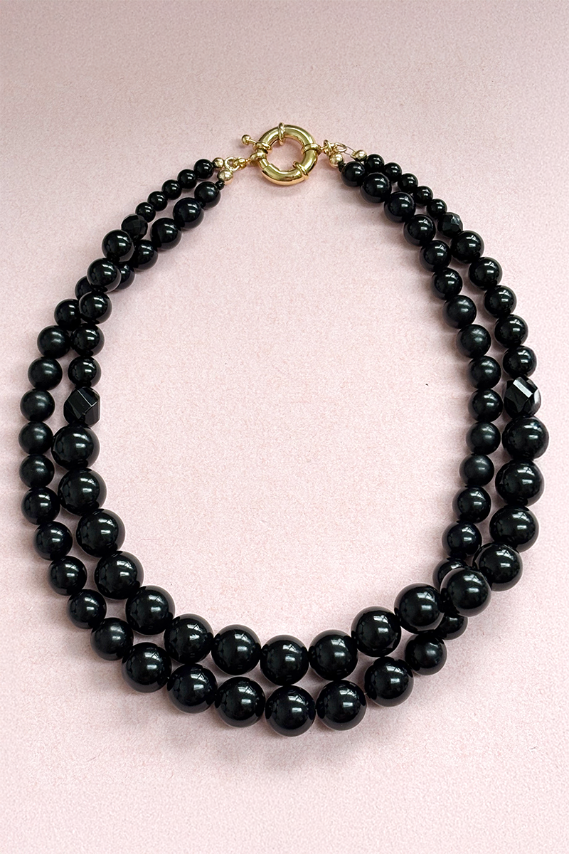 A double layer of pre-loved beads make up this unique necklace; perfectly imperfect with a mix of sizes, textures and shapes.