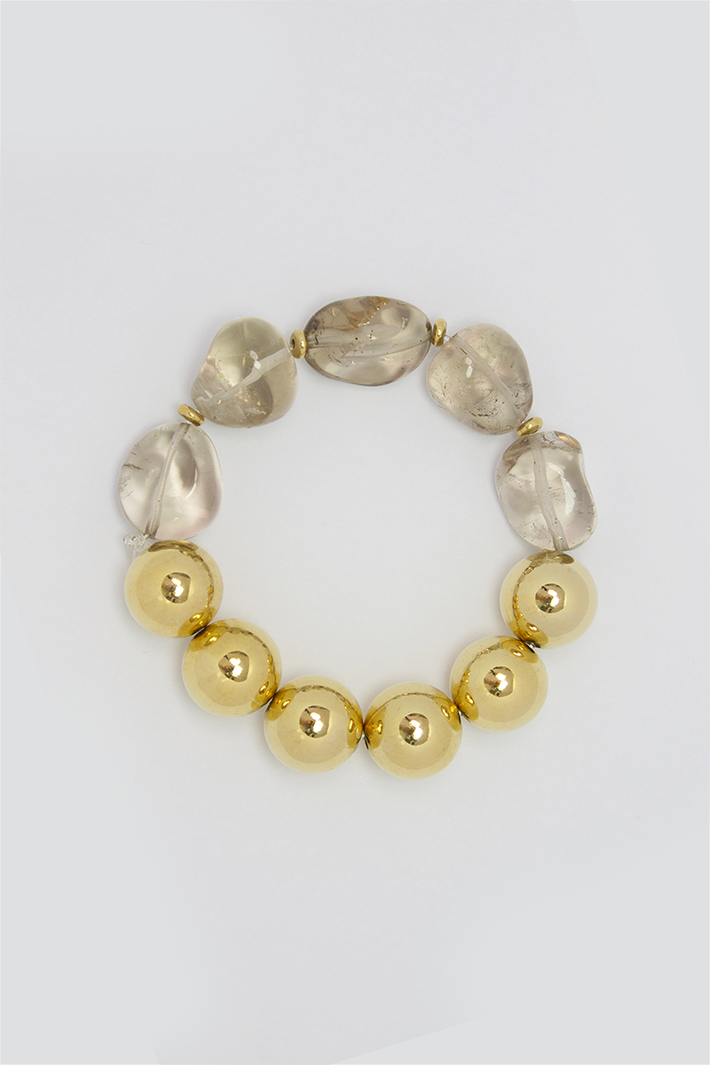 A chunky and statement bracelet to add a touch of glamour to your look. The hollow gold beads are co-ordinated with the gold spacers separating the gemstone beads.