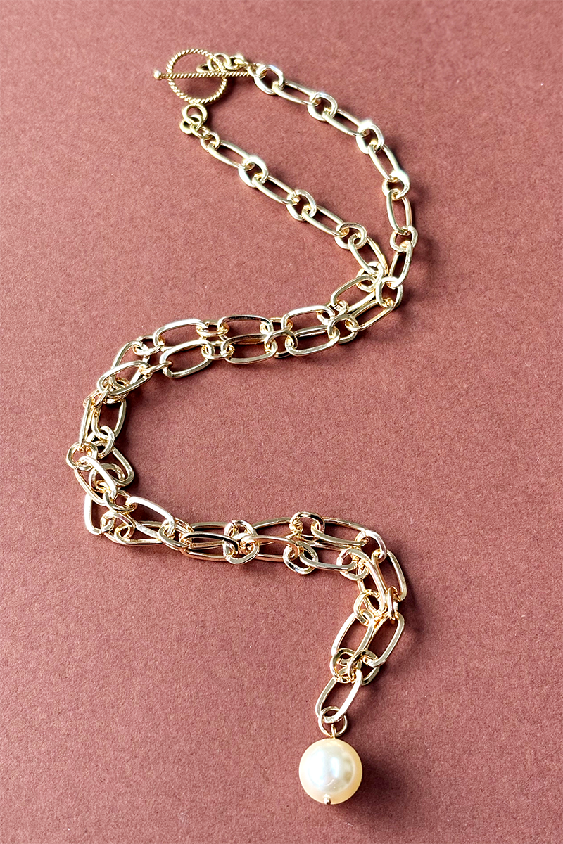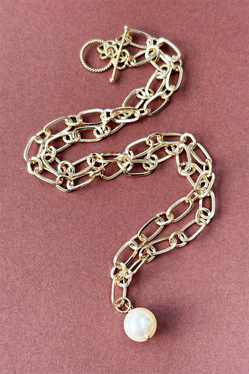 A pretty gold-plated chain is finished with gold-plated silver details; the creamy imitation pearl is the main feature.