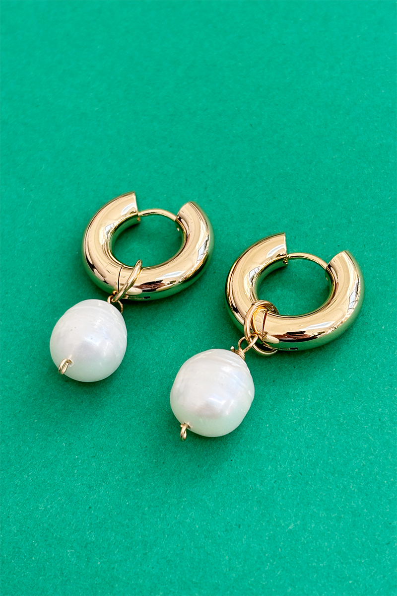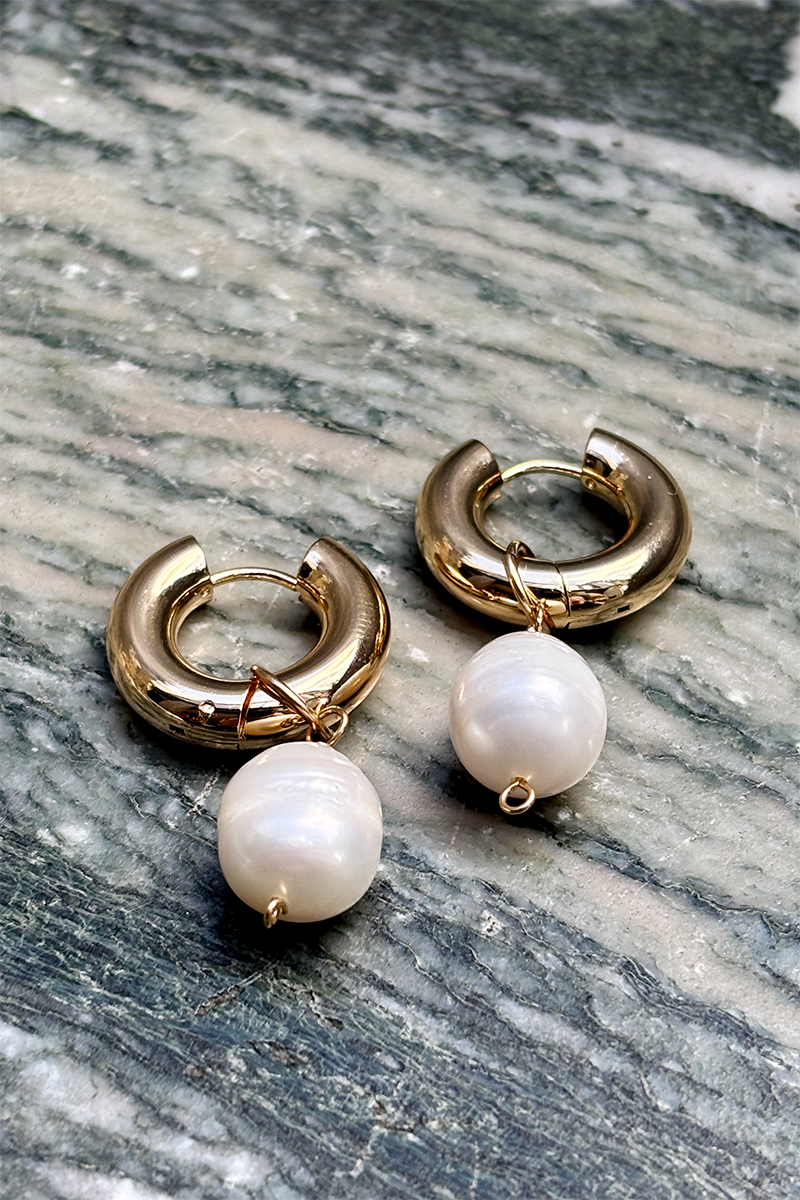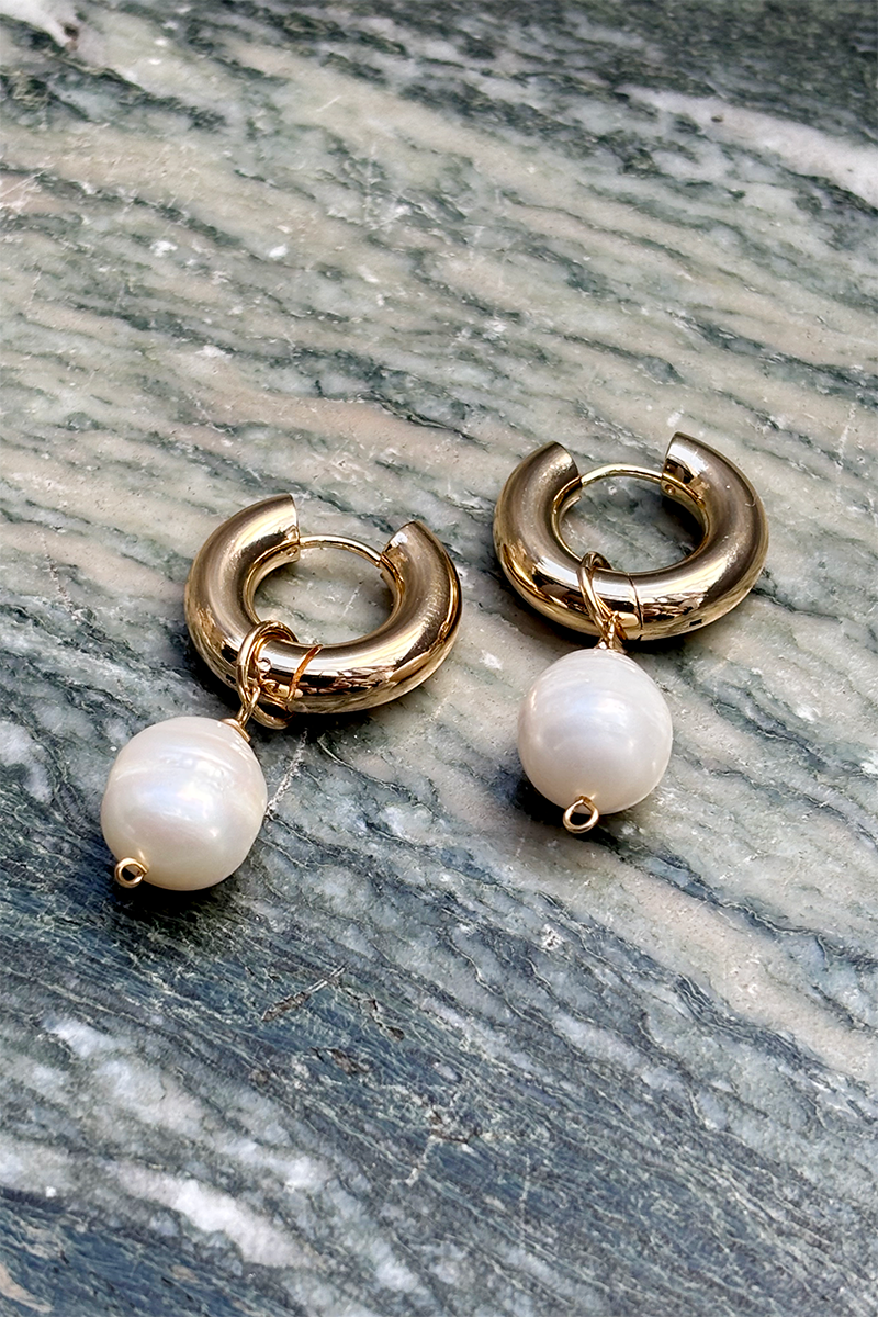 The chunky and sleek hoops have been contrasted with freshwater pearls with natural rings. An easy to wear style with pearls that can also be removed so the hoops can be worn alone.