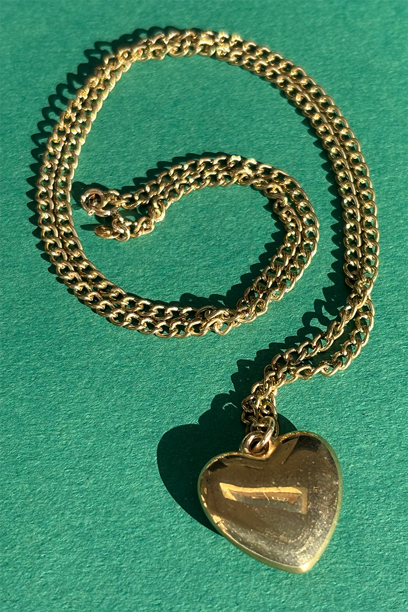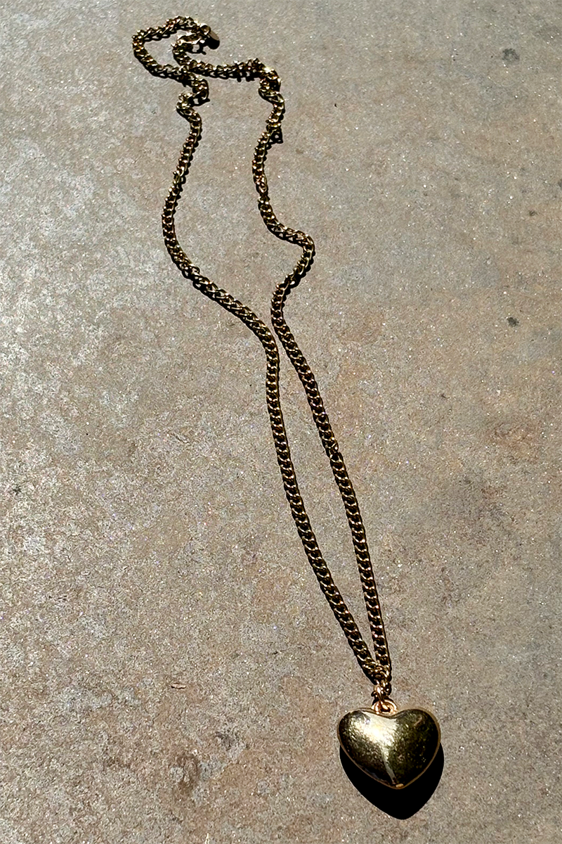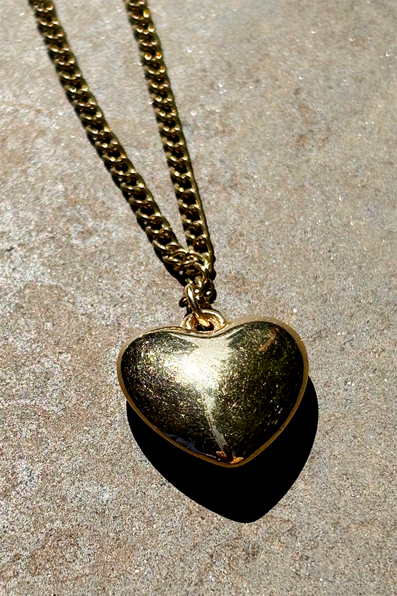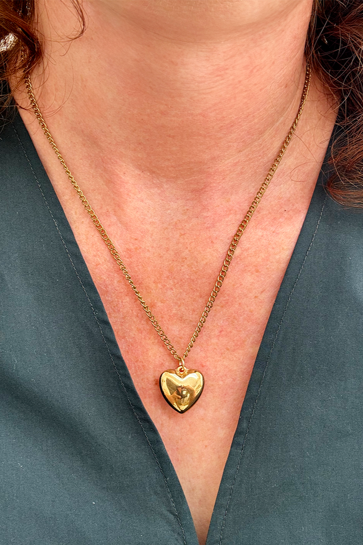 A cute puffy heart has been saved from a broken necklace and used to create a simple piece. Ideal for layering with other pieces.