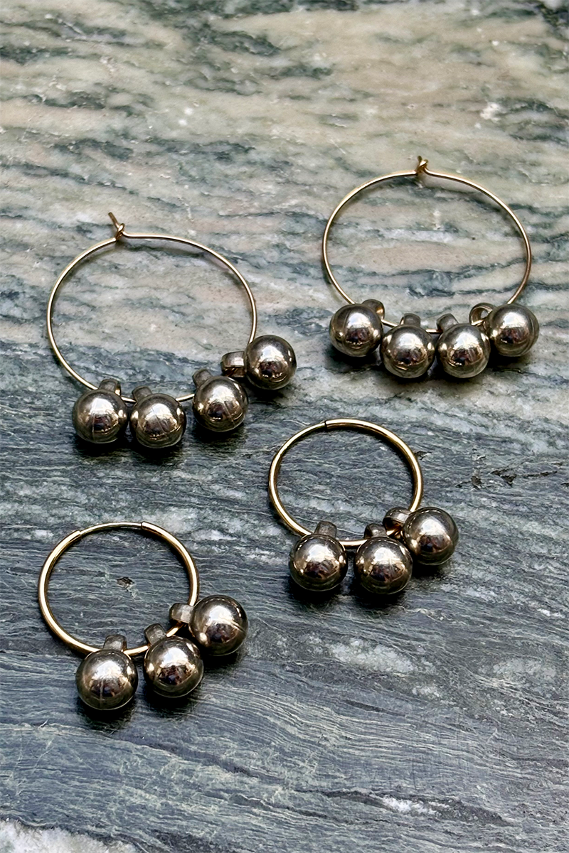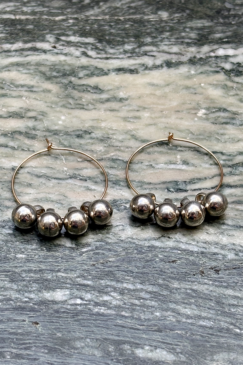These are pretty hoop earrings created using pre-loved metal beads saved from a broken necklace.