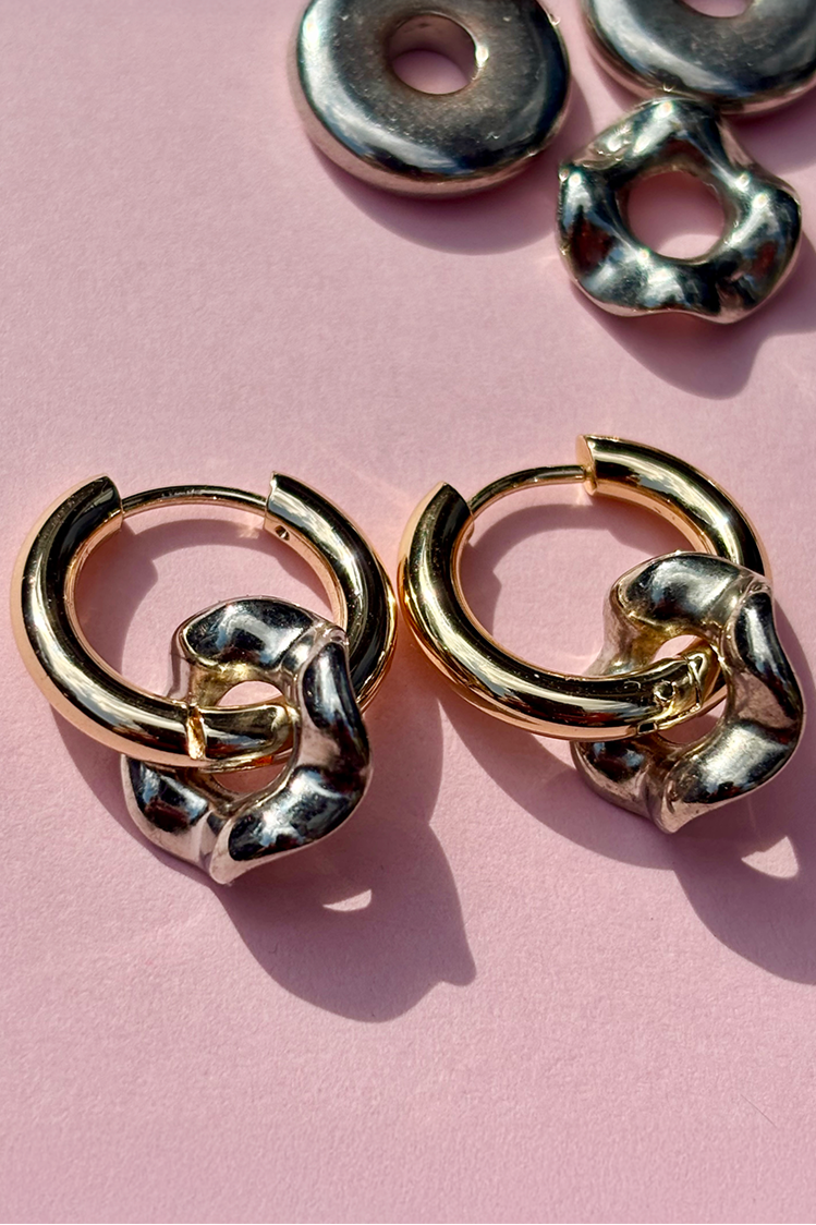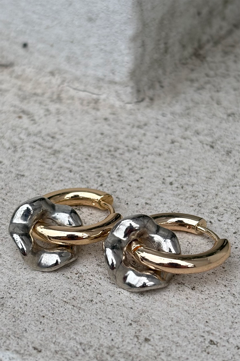 The prettiest wavy metal beads have been saved from a broken necklace and added to glossy gold-plated hoops.